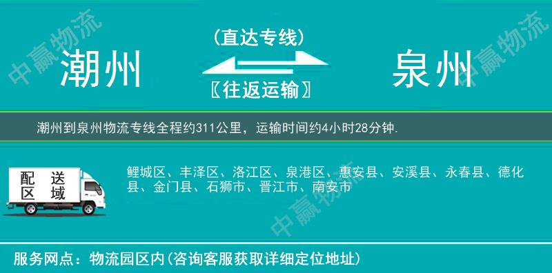 同时,建潮中赢物流为了方便广大客户从潮州到泉州的不同运输时效和物流成本要求,建潮中赢物流特推出潮州到泉州物流公司相关业务,以此来降低从潮州到泉州运输的物流成本,提高潮州到泉州的物流效率,以便为新老客户提供更加完善的从潮州到泉州的一站式优质物流服务!